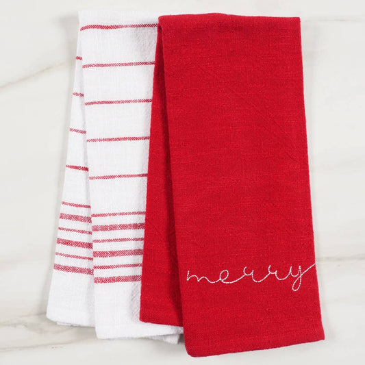 KAF Home Holiday Kitchen Tea Towels - Set of 3: Very Merry Wreath