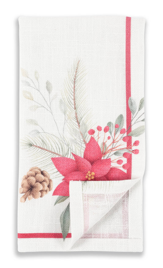 Poinsettia Printed Set Of 4 Napkins - 20" x 20'