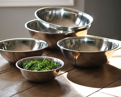 These Stainless Steel Mixing Bowls are a must in any kitchen. They have a bright mirror finish and a beaded edge. They nest for easy storage and they are very lightweight. All bowls are sold separately and are available in 1.5 qt, 3 qt, 4 qt, 5 qt, and 8 qt sizes.