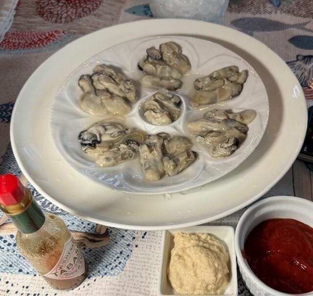 - Maine Man's Fine Porcelain Oyster Plate for preparing, serving, and enjoying 6 oysters with sauce in style