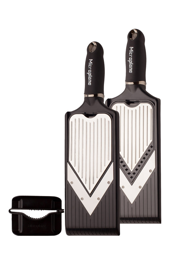 • The compact V-Blade Slicer with Julienne Feature offers two blade options: Long lasting, ultra-sharp V-Blade - effortlessly and precisely cuts fruits, vegetables and cheeses into slices