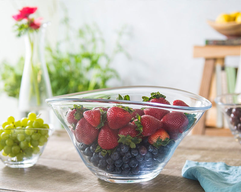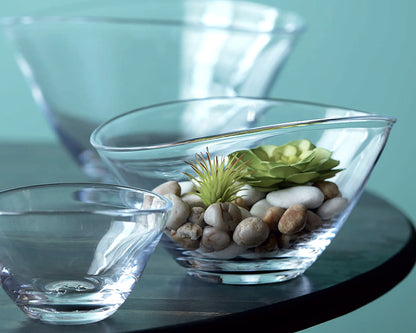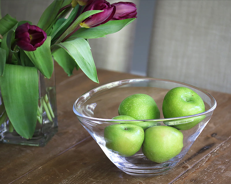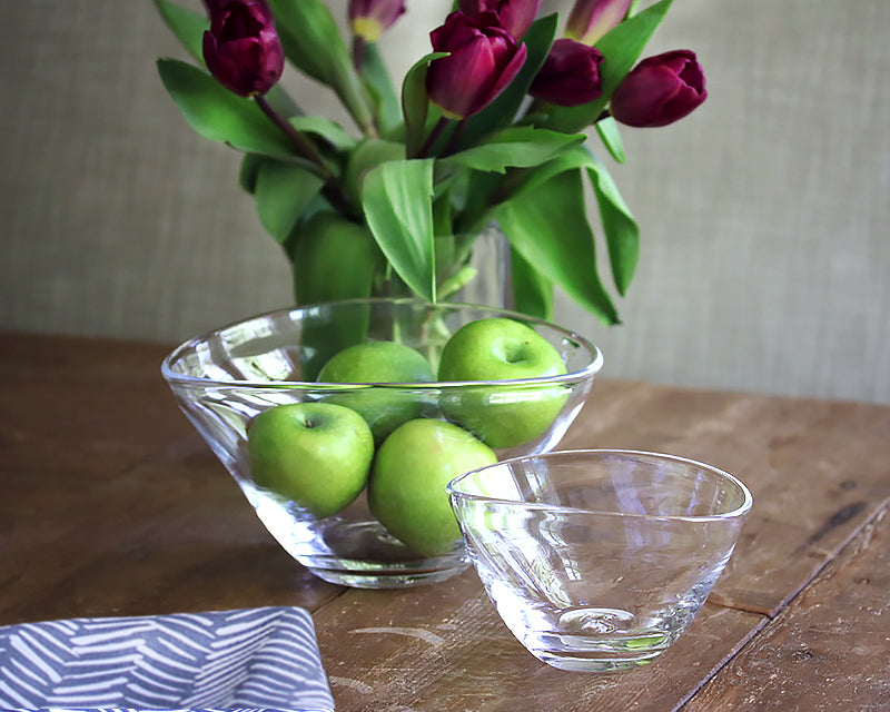 The Barre Bowl by Simon Pearce has soft and modern lines. The asymmetrical wave in its shape is perfect for displaying fruit, salads, or collectibles. The bowl doubles as a great centerpiece and a useful item for everyday serving. Handmade by Simon Pearce glassblowers using centuries-old techniques. Made in the USA.