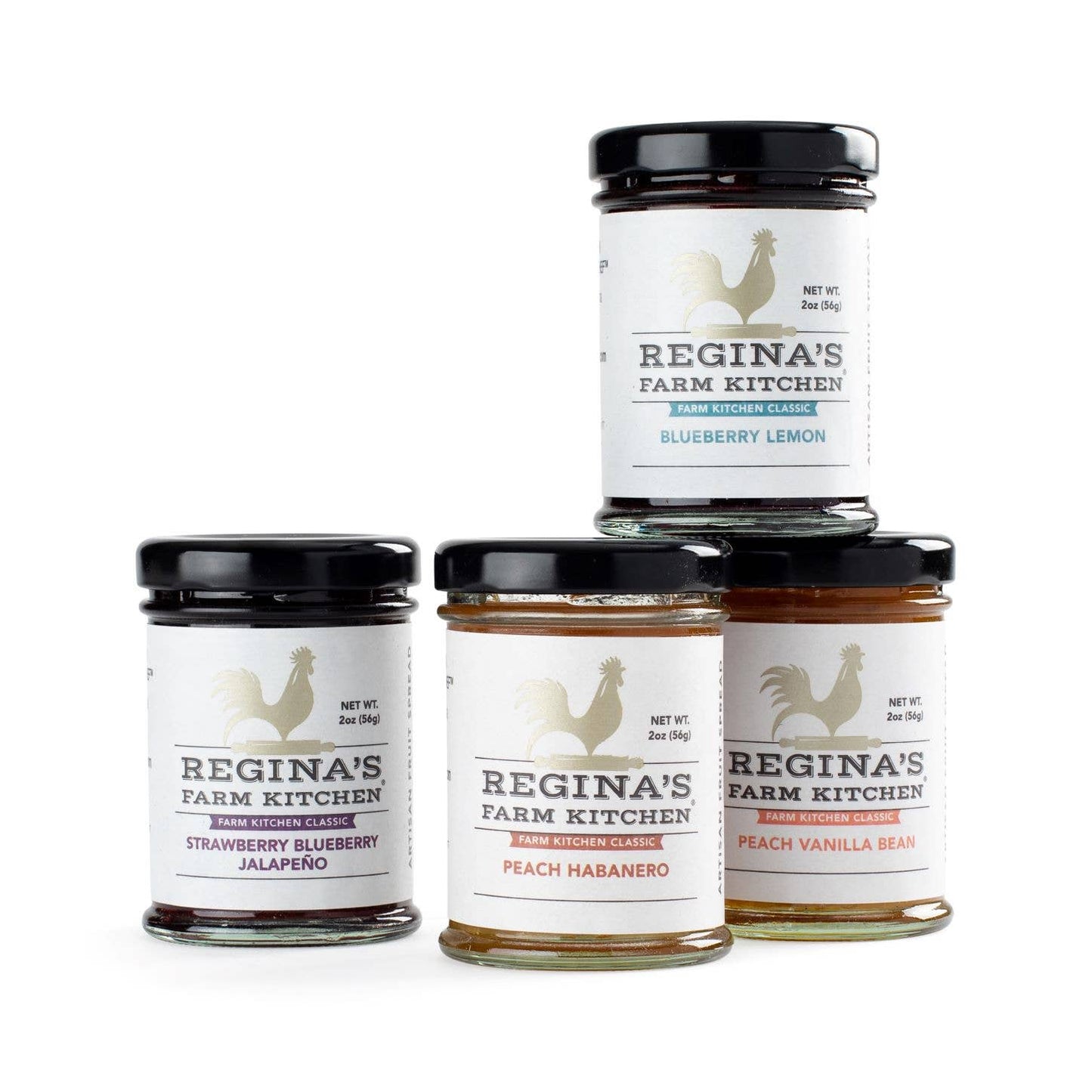Taste the sweetness! This gift box includes four 2-ounce jars of our most popular fruit spreads: Strawberry Blueberry Jalapeño, Blueberry Lemon, Peach Vanilla Bean, and Peach Habanero. Perfect for cheese boards or sharing with friends.
