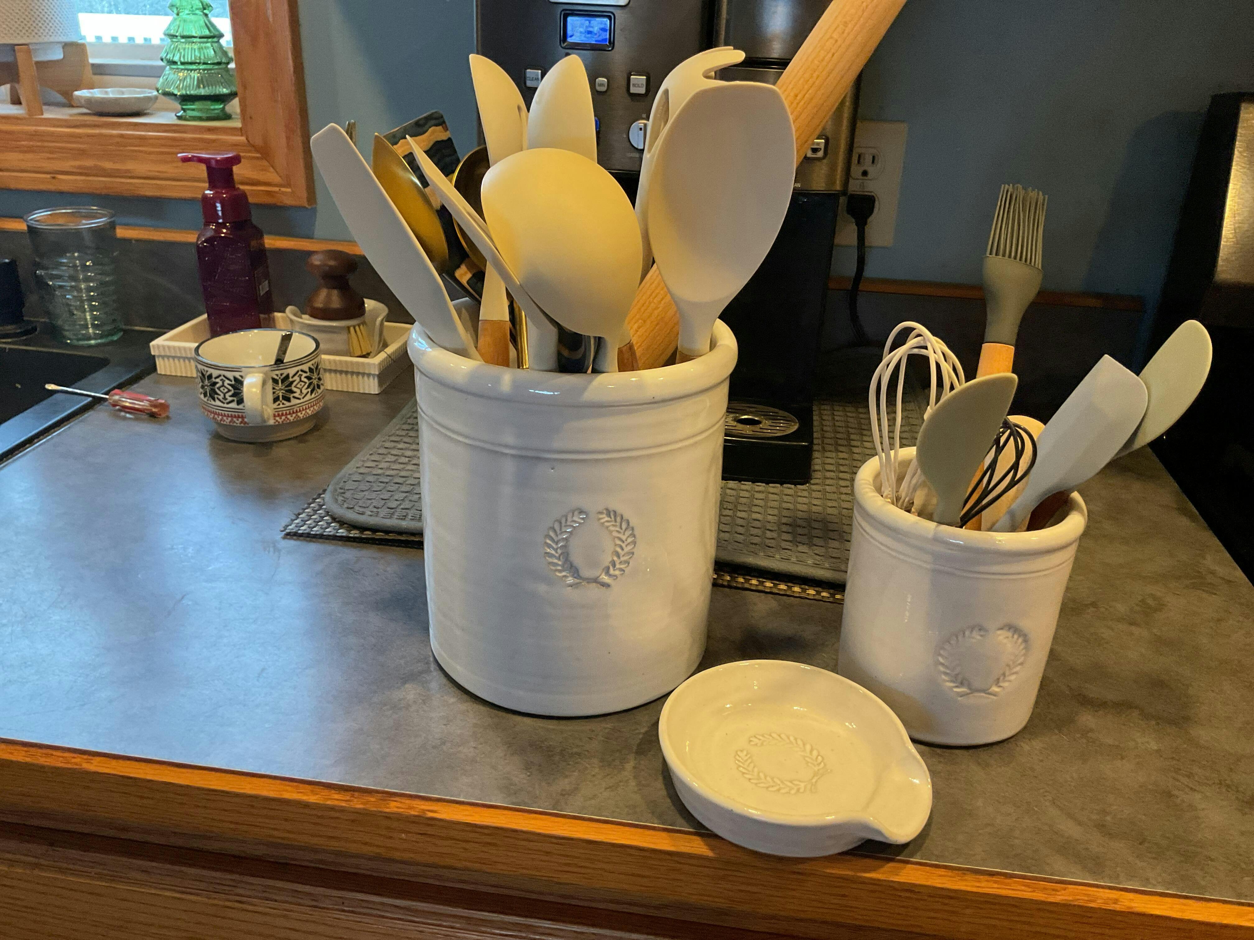 These Farmhouse Crocks have a simplistic, fresh, and timeless design. It's a piece that has multiple uses in the kitchen. Fill it with flowers or herbs for an effortless look. Place your flatware in it for a simple buffet dinner where each person can help themselves. Place it by your stove and fill it with cooking utensils and wooden spoons. Use it as a brush holder by your sink. Simple and functional beauty. Available in two sizes. Handmade in Vermont by Farmhouse Pottery. Made in the USA.