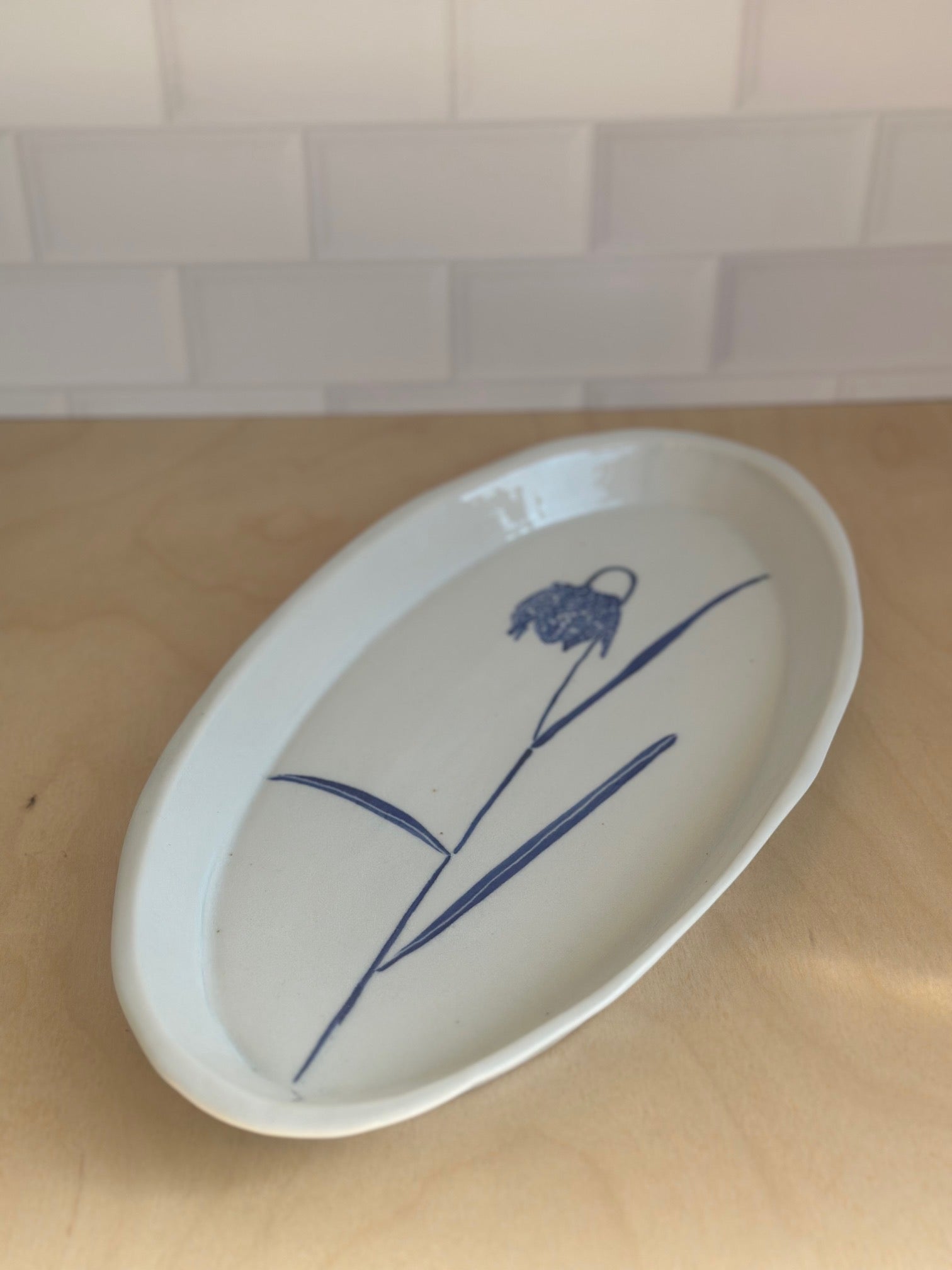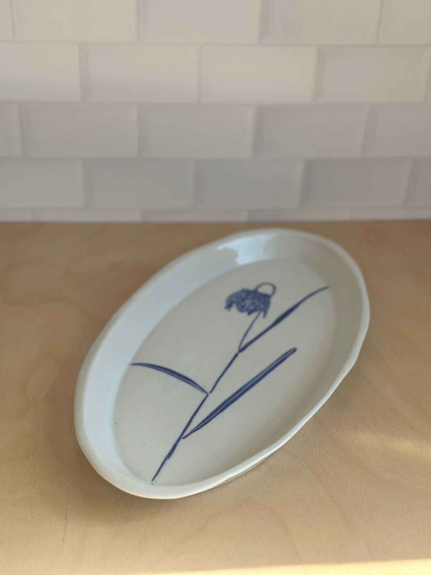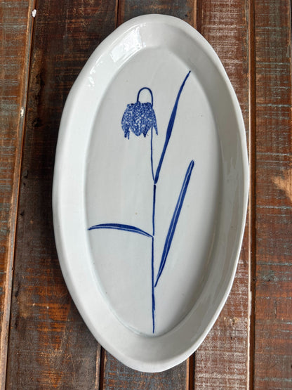English Porcelain Fritillaria Oval Short Platter