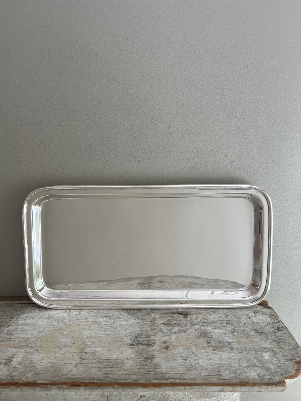 The gleaming surface features a captivating engine-turned design. This beautiful piece isn't just for serving – lean it upright against your backsplash when not in use for a touch of sophisticated glamour. The generous size makes it perfect for a variety of uses, from presenting delectable hors d'oeuvres and cocktails to serving afternoon tea or decadent desserts. Impress your guests and elevate your everyday moments with this vintage treasure.