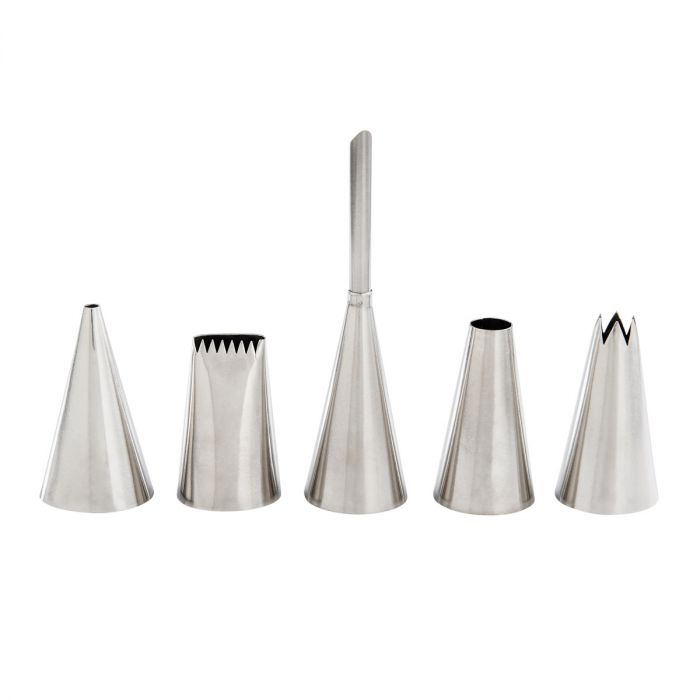 These decorating tips are great for detailed cake designs and lettering, piping icing, filling baked goods with pastry cream, and topping pies for that extra special touch.