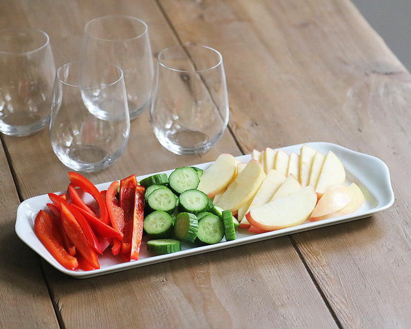 The Narrow Platter is a beautiful serving piece that can mix with any dinnerware and the dishes are stackable, allowing them to be stored easily when not in use.