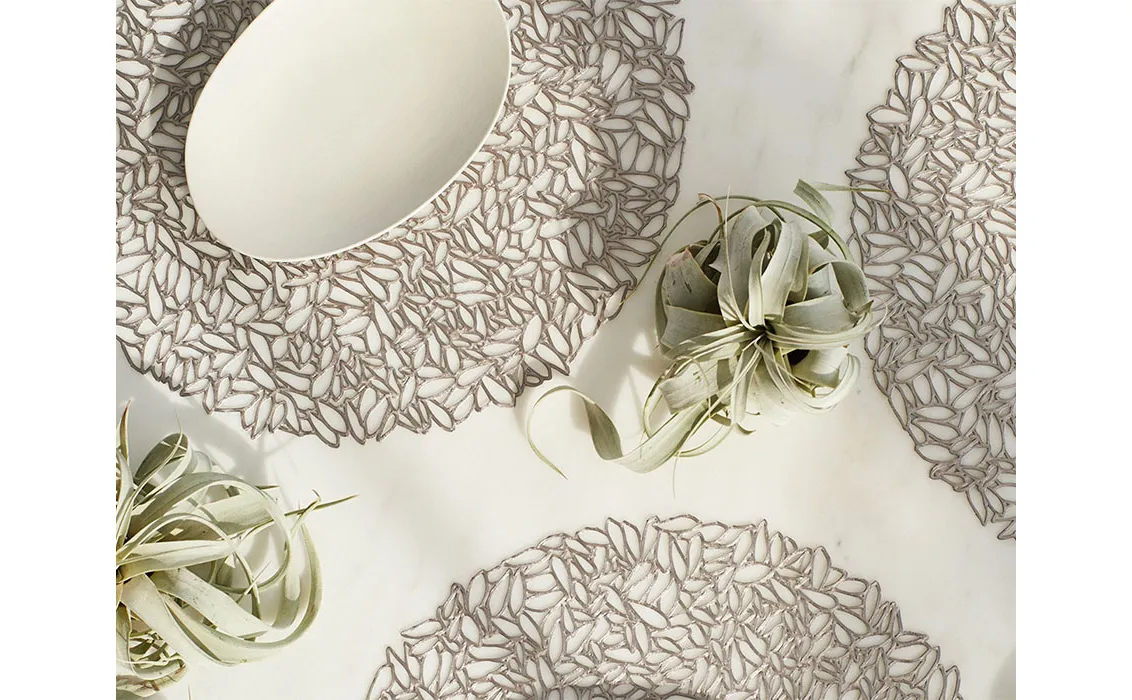 The exquisite Petal design is a result of a highly intricate and time-consuming process that involves using specialized molds and collaboration between Chilewich and experts at the production factory in Taiwan. The result is a modern lace cut-out that can be used to add a touch of elegance to your dining table. The Petal can be used as a decorative placemat, or to surround a plate like a charger, offering a unique and understated touch to your dining experience.