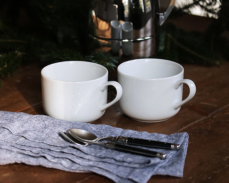 I am so happy with these cups! They are a great size for a large cup of tea, a snack, soup with a sandwich, and of course ice cream! I have lots of white dishes from France and can recommend them for their beauty and durability. I think anyone would find these cups a great addition to their table. Or favorite chair. Or lawn chair! Or porch swing! You get the picture!