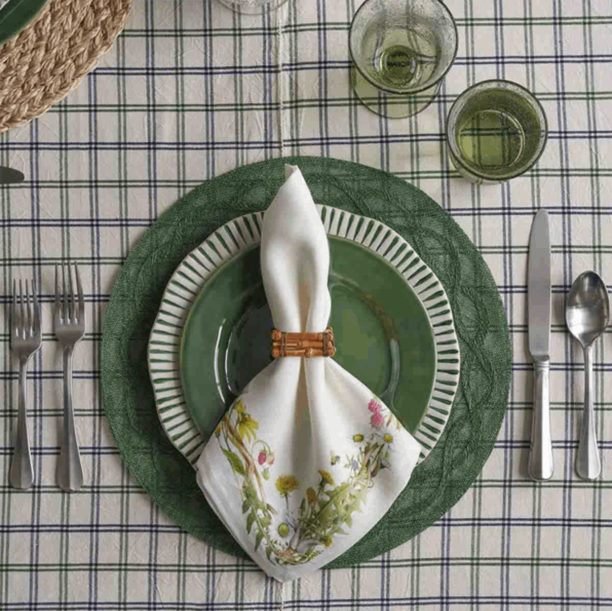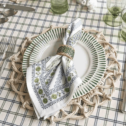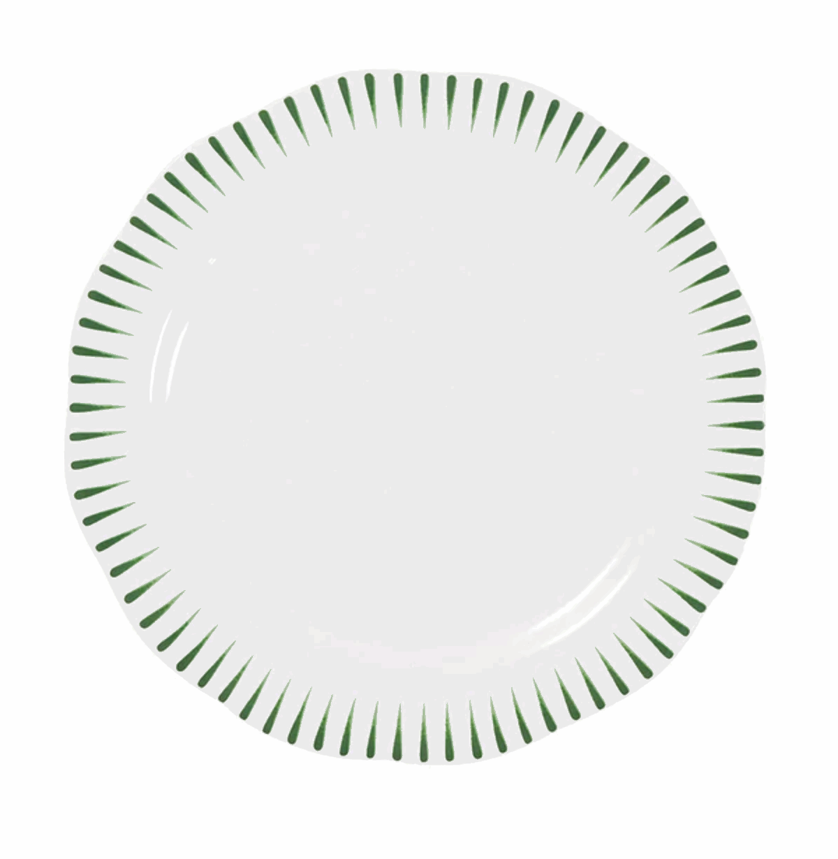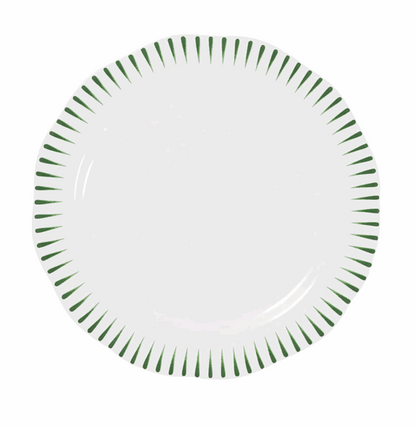 This striking dinner plate features an enchanting border of radiant stripes in rich Basil green, symbolizing endless pathways and new adventures. The versatile design transitions effortlessly from casual brunches to elegant evening dining, while the fresh, verdant hue adds natural sophistication to any table setting.