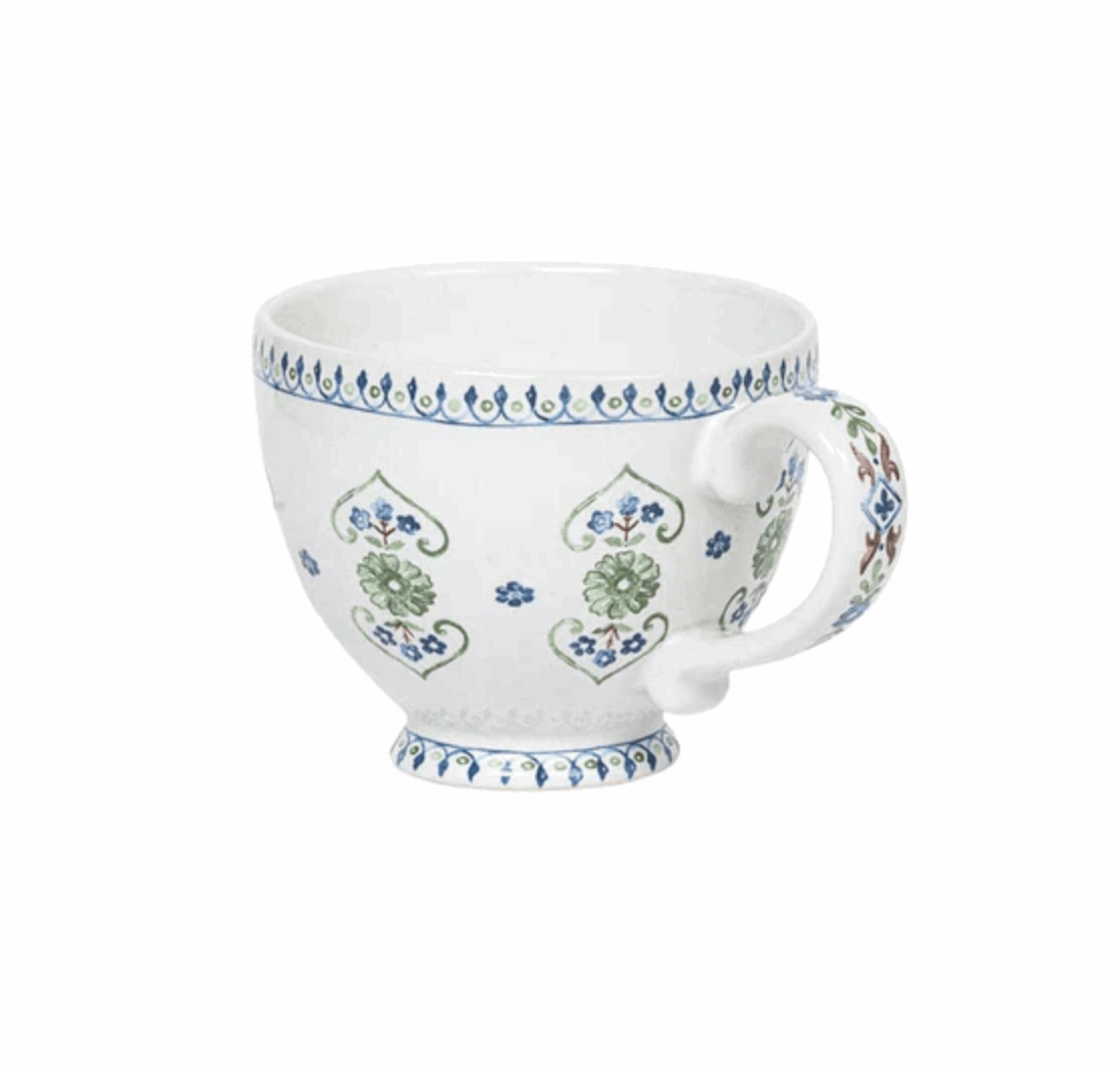 Inspired by the romantic florals of Seville, this generously sized breakfast cup offers a fresh, modern twist on classic Spanish design. Perfect for your morning coffee, afternoon tea, or any soothing beverage, its sculptural handle and delicate foot make it as much a piece of art as a functional vessel. The intricate trim along the top and bottom adds a subtle yet refined touch, elevating your everyday moments with a sense of elegance and charm.